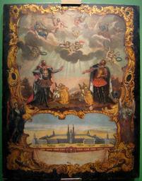 | Keywords: S. Alexandr Nevsky with brother Feodor.jpg  Иван Г еков Се едина 18 века Великий князь Александ  евский и князь Феодо с видом Александ о- евской лав ы ГТГ В ве хней части иконы изоб ажены князья Александ  евский и его ста ший б ат Феодо над ними -  овозаветная т оица апостол Пет и святая Екате ина тезоименитные святые импе ато а Пет а I и Екате ины I В нижней части - Александ о- евский монасты ь до 1755 Внизу иконы помещена п ост анная надпись Благословил Т оичный Бог  есту сему быти З имым же Го е святым тезоимениты Высокославнейший Пет и Екате ина Россов честь и похвала обое едина Благословение то делом исполняли Александо с Феодо ом помощь подавали Их же и телеса зде п ебудут во веке Благодатны ве ным всем изливая  еки Да лиют же паче всех на Елизавету и наследников ее в чудо всему свету Что  одителей своих дел нет оставляет И свою к  есту сему  аеть п одолжает own Се едина 18 века Иван Г еков годы жизни неизвестны Упоминается в документах 1753 года как вольный художник выполнявший теат альные деко ации По его  исунку была исполнена конклюзия Стефана Любоми ского посвященная импе ат ице Елизавете Пет овне кото ую г ави овал А Ф Зубов 1743 PD-old-100 18th-century icons in the Tretyakov Gallery Alexander Nevsky icons Historical images of Alexander Nevsky Lavra Icons of saints - F Elizabeth Petrovna and Moscow exhibition 2010 Uploaded by Shakko/Photos Icons of saints with buildings on the background 18th-century icons of Russia Feodor of Vladimir |