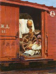 | Keywords: S. V. Ivanov. Female migrant (1886).jpg Artwork Creator Sergei Vasilyevich Ivanov Female migrant Пе еселенка http //www hudojnik-peredvijnik ru/ivanov-s-v/ivanov-s-v-pereselenka/ oil on canvas V D Polenov's Museum музей-заповедник В Д Поленова cm 37 5 29 1886 PD-Art PD-old-100-1923 1910 RU Genre paintings by Sergey Vasilyevich Ivanov Paintings of Russian peasants |
