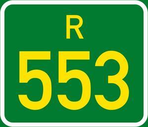 Keywords: SA road R553.svg en South Africa R553 road sign own Htonl 2014-09-13 553 number Diagrams of regional road number signs of South Africa