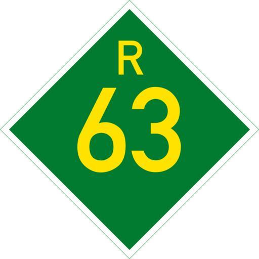 Keywords: SA road R63.svg en South Africa R63 road sign own Htonl 2014-08-31 Diagrams of provincial road number signs of South Africa 63 number R63 road South Africa