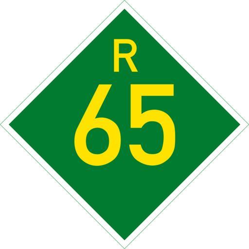 Keywords: SA road R65.svg en South Africa R65 road sign own Htonl 2014-08-31 Diagrams of provincial road number signs of South Africa 65 number