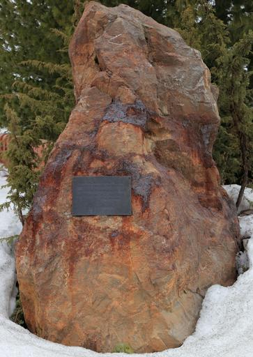 | Keywords: Saattopora Memorial Stone Kittilä 20160411.JPG en A memorial stone of ore of the Saattopora mine in Kittilä Finland The plaque states that this piece of ore contains 70 grams of gold and 25 kilogramas of copper fi Kittilän Saattoporan kaivoksen muistokivi ja -laatta Kittilässä Tässä malmikivessä on kultaa 75 grammaa ja kuparia 25 kiloa 2016-04-11 own Estormiz other versions 67 652868333333 24 912786666667 cc-zero April 2016 in Finland Gold mines Kittilä Memorial stones in Finland Mines in Finland Ores Outokumpu company Taken with Canon EOS 6D |