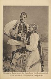 Keywords: Sächsische Bauern aus der Umgebung von Hermannstadt.jpg Sächsische Bauern aus der Umgebung von Hermannstadt <br> Costumes of the Transylvania Saxons from Hermannstadt modern-day Sibiu Romania http //www zeno org/Bildpostkarten/M/Trachten +Ethno/Rum C3 A4nien/S C3 A4chsische+Bauern+aus+der+Umgebung+von+Hermannstadt see here ca 1900 Verlag Jos Drotleff Hermannstadt pd-old Transylvanian Saxons Tracht National costumes of Romania Mountaineer belt worn in the Carpathians region Images from zeno org |