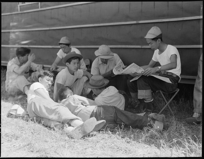 | Keywords: Sacramento, California. Student evacuees of Japanese ancestry. Most of these boys have attended th . . . - NARA - 537780.jpg Scope and content The full caption for this photograph reads Sacramento California Student evacuees of Japanese ancestry Most of these boys have attended the University of California for a period of up to three years They have been at this Assembly center for several days and are awaiting transfer to a War Relocation Authority center where they will spend the duration General notes 537780 Local identifier 210-G-C466 Department of the Interior War Relocation Authority 02/16/1944 - 06/30/1946 NARA-Author Lange Dorothea 1895-1965 Photographer 1372774 <br /> Still Picture Records Section Special Media Archives Services Division NWCS-S National Archives at College Park 8601 Adelphi Road College Park MD 20740-6001 1942-05-20 Record group Record Group 210 Records of the War Relocation Authority 1941 - 1989 Record group ARC 537 Central Photographic File of the War Relocation Authority compiled 1942 - 1945 Series ARC 536000 File unit File unit ARC Variant control numbers NAIL Control Number NWDNS-210-G-C466 Other versions <gallery> File Sacramento _California _Student_evacuees_of_Japanese_ancestry _Most_of_these_boys_have_attended_th_ _ _ _-_NARA_-_537780 tif tif File Sacramento _California _Student_evacuees_of_Japanese_ancestry _Most_of_these_boys_have_attended_th_ _ _ _-_NARA_-_537780 jpg jpg </gallery> NARA-cooperation PD-USGov Dorothea Lange 1942 in Sacramento Japanese American internment processing in Sacramento University of California |