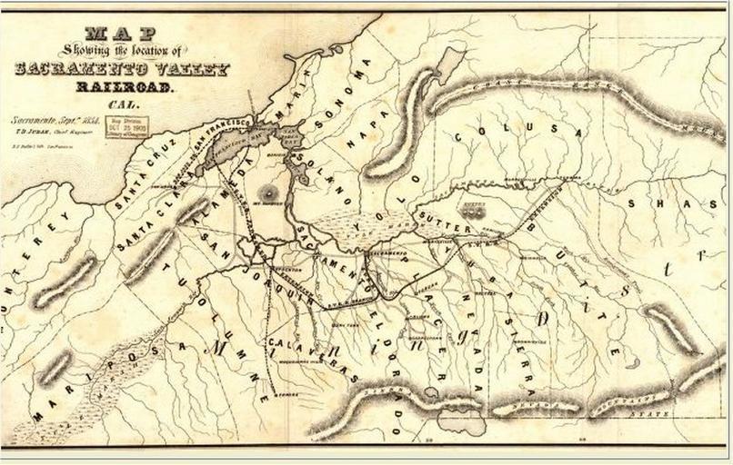 Keywords: Sacramento Valley Railroad 1854.jpg This is a map from the following URL http //memory loc gov/cgi-bin/query/r ammem/gmd field NUMBER+ band g4361p+rr005520 Map showing the location of Sacramento Valley Railroad Cal Sacramento Septr 1854; T D Judah Chief Engineer - Library of Congress link showing historic photo of 1854 sketch; From Report of the Chief Engineer of the Preliminary Surveys and Future Business of the Sacramento Valley Railroad Sacramento Democratic State Journal 1854 en Sacramento Valley Railroad en Folsom CA PD-old Rail transport in California Central Valley of California |