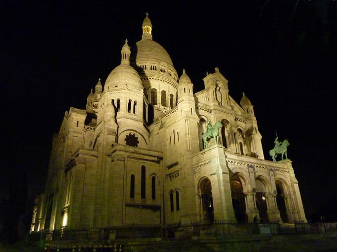 Keywords: sacre coeur church montmartre house of worship basilica sacré coeur france paris night photograph places of interest abendstimmung