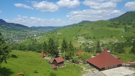 Keywords: Sadova Romania landscape2.jpg Sadova Romania Buildings belonging to a hotel Pensiunea Steaua Nordului can be seen at the bottom 2016-06-08 10 46 14 own Jan Pešula other versions 47 558888888889 25 501388888889 cc-zero Sadova Suceava
