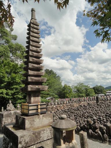 Keywords: sagano japan landscape markers stones temple faith religion summer spring landmark historical spire architecture outside sky clouds destinations forest trees woods