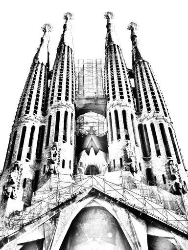 Keywords: sagrada família barcelona architecture spain gaudí construction building monument drawing historic buildings black and white
