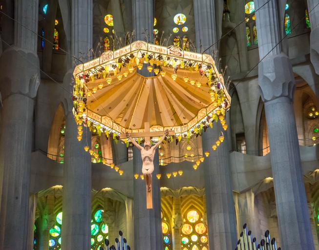 Keywords: sagrada familia cathedral barcelona architecture church jesus christ famous religion catholicism landmark spain gothic construction europe christianity interior stained glass christian symbol