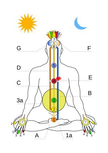 | Keywords: SahajaSubtleSystem.svg en The subtle system of Sahaja Yoga 1 TheMooladhara Chakra 1a TheMooladhar 2 TheSwadisthana Chakra 3 TheNabhi Chakra 3a The Void 4 TheAnahata Chakra 5 TheVishuddhi Chakra 6 TheAgnya Chakra 7 TheSahasrara Chakra A Kundalini B Left channel Ida nadi C Central channel Sushumna nadi D Right channel Pingala nadi E Spirit F Ego G Superego ru Тонкая система в Сахаджа-йоге 1 уладха а чак а 1а уладха 2 Свадиштана чак а 3 аби чак а 3а Войд 4 Анахата чак а 5 Вишудхи чак а 6 Агия чак а 7 Сахас а а чак а A Кундалини B Левый канал Ида нади C Цент альный канал Сушумна нади D П авый канал Пингала нади E Дух F Эго G Супе эго own Alex-engraver 2011-01-23 Chakras Subtle bodies Meditation Human anatomy in relation to yoga Lotus position in art Kundalini yoga |