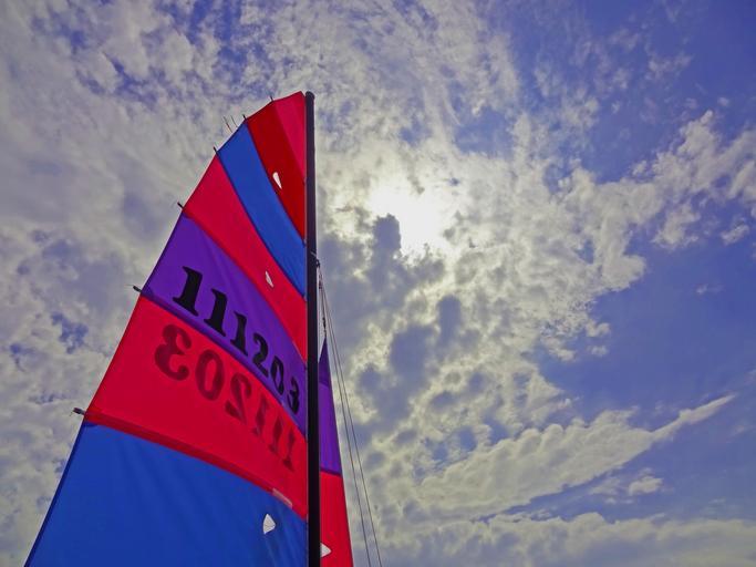 Keywords: sail sailing catamaran catamaran sailing leisure sun back light lake sea holiday sailing gym