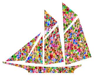 Keywords: sailboat ocean sea water transportation ship colorful prismatic chromatic rainbow tiles tiled voronoi abstract geometric art vector svg