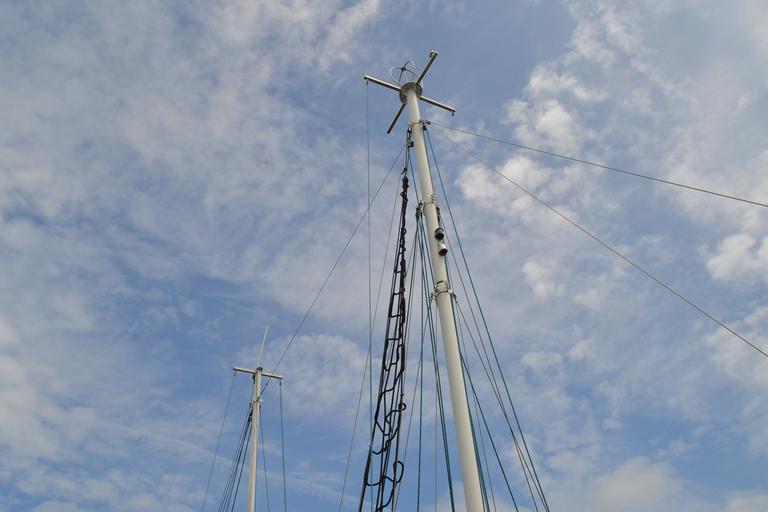 Keywords: sailing boat mast sailing mast ship sky blue clouds boot