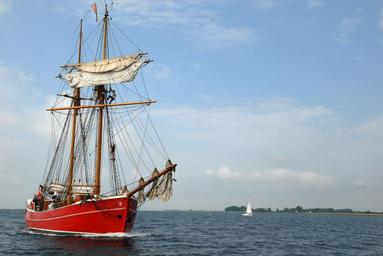 Keywords: sailing vessel baltic sea sea water clouds sail masts sky shipping rigging coast ship mast red wooden ship