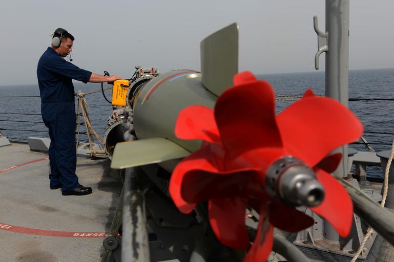 Keywords: Sailor prepares surface vessel torpedo tube launcher. (9191429567).jpg ARABIAN GULF June 29 2013 Sonar Technician 2nd Class Brennan Lukas from Ventura Calif prepares to test fire a surface vessel torpedo tube launcher aboard the guided-missile destroyer USS Higgins DDG 76 Higgins is deployed to the U S 5th Fleet area of responsibility promoting maritime security operations theater security cooperation efforts and support missions for Operation Enduring Freedom U S Navy photo by Mass Communication Specialist 2nd Class Devin Wray/Released 130629-N-ZG290-010 Join the conversation http //www facebook com/USNavy www facebook com/USNavy http //www twitter com/USNavy www twitter com/USNavy http //navylive dodlive mil navylive dodlive mil http //pinterest com pinterest com http //plus google com plus google com http //www flickr com/photos/usnavy/9191429567/ Sailor prepares surface vessel torpedo tube launcher 2013-06-29 07 57 http //www flickr com/people/56594044 N06 Official U S Navy Page from United States of America MC2 Devin Wray/U S Navy U S Navy photo PD-USGov-Military-Navy Official U S Navy Imagery http //flickr com/photos/56594044 N06/9191429567 2014-04-03 13 04 26 cc-by-2 0 Files uploaded by Russavia USS Higgins DDG-76 |