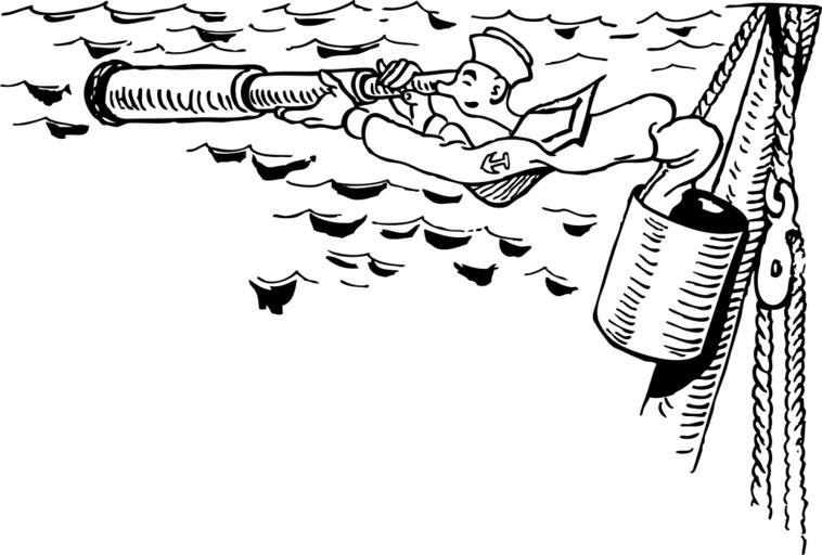Keywords: sailor spyglass man ship lookout telescope cartoon marine surveillance magnification nautical navigation