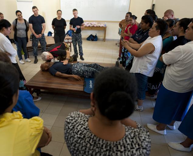 | Keywords: Sailors participate in Pacific Partnership 2013. (9133747789).jpg VIAOLA Tonga June 20 2013 New Zealand Army Sgt Richard Gill trains nursing students on proper CPR techniques at the Viola Hospital during a Pacific Partnership 2013 nursing conference Working at the invitation of each host nation Pacific Partnership is joined by partner nations that include Australia Canada Colombia France Japan Malaysia Singapore South Korea and New Zealand to strengthen disaster response preparedness around the Indo-Asia-Pacific region U S Navy photo by Mass Communication Specialist 2nd Class Tim D Godbee/Released 130620-N-SK590-232 Join the conversation http //www facebook com/USNavy www facebook com/USNavy http //www twitter com/USNavy www twitter com/USNavy http //navylive dodlive mil navylive dodlive mil http //pinterest com pinterest com http //plus google com plus google com http //www flickr com/photos/usnavy/9133747789/ Sailors participate in Pacific Partnership 2013 2013-06-20 10 55 http //www flickr com/people/56594044 N06 Official U S Navy Page from United States of America MC2 Tim D Godbee/U S Navy Attribution License XMP-photoshop Source Navy Visual News Service PD-USGov-Military-Navy Official U S Navy Imagery http //flickr com/photos/56594044 N06/9133747789 2014-04-03 13 01 00 cc-by-2 0 Soldiers of New Zealand Pacific Partnership 2013 Society of Tonga Files uploaded by Russavia Files uploaded by Russavia |