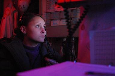 Keywords: Sailors stand watch aboard USS Ronald Reagan DVIDS124541.jpg en Under dim blue lights aviation boatswain's mate fuel Airman Ashley Flores stands watch in flight deck control onboard the Nimitz-class aircraft carrier USS Ronald Reagan During night operations flight deck control transitions from white lights to blue lights to prevent any visual distraction to pilots during flight operations The Ronald Reagan Carrier Strike Group is on a routine deployment in the 7th Fleet area of responsibility Operating in the Western Pacific and Indian Ocean the U S 7th Fleet is the largest of the forward-deployed U S fleets covering 53 million square miles with approximately 50 ships 120 aircraft and 20 000 Sailors and Marines assigned at any given time 2008-10-25 Petty Officer 3rd Class Torrey Lee https //www dvidshub net/image/124541 081026-N-+++++-001 2008-10-26 01 57 INDIAN OCEAN PD-USGov-Military-Navy Flight deck control of USS Ronald Reagan CVN-76 Images from DoD uploaded by Fæ |