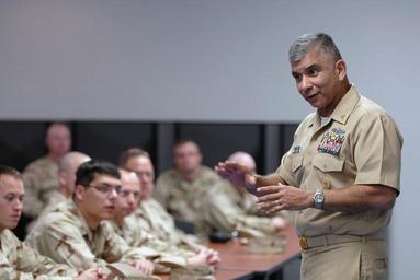Keywords: Sailors undergoing training DVIDS77760.jpg en Master Chief Petty Officer Joe R Campa Jr speaks with sailors who are undergoing training at the Joint Interface Battalion 1 at Fort Bliss before they begin their seven-month individual augmentee assignment to Iraq 2008-02-12 Petty Officer 1st Class Jennifer Villalovos https //www dvidshub net/image/77760 080212-N-+++++-212 2008-02-18 13 11 FORT BLISS TX US PD-USGov-Military-Navy Fort Bliss Texas Images from DoD uploaded by Fæ |