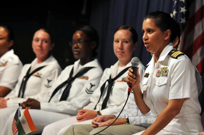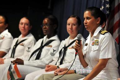 MAKE A MEME View Large Image Sailors visit India DVIDS380349.jpg en Cmdr Shanti Sethi commanding officer of the Arleigh Burke-class guided-missile destroyer USS Decatur answers question from female students from various city colleges and high schools to commemorate ...