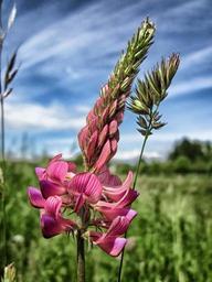 Keywords: sainfoin flower plant sky clouds nature outside spring summer hdr field meadow
