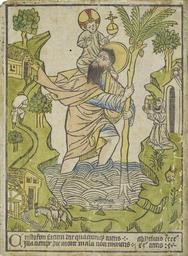 Keywords: Saint Christopher 001.jpg John Rylands Library in Manchester This is generally regarded as the earliest datable woodcut in Europe although the date on the print could simply commemorate a particular event in that year <br />The inscription can be translated In whatsoever day thou seest the likeness of St Christopher In that same day thou wilt from death no evil blow incur La xylographie colorée à la main datée de 1423 intitulée Saint Christophe est conservée dans la collection Rylands de la bibliothèque de l'université de Manchester C'est l'estampe datée la plus ancienne d'Europe L'inscription peut être traduite ainsi « En ce jour tu vois l'image de St Christophe en cette même journée aucun mal ou coup mortel tu ne craindras » http //www ucc ie/milmart/chrswstart7l jpg Author 1423 PD-old-100 15th-century woodcuts 1423 in Europe Printing Relief printing History of printing Saint Christopher Christian saints in art