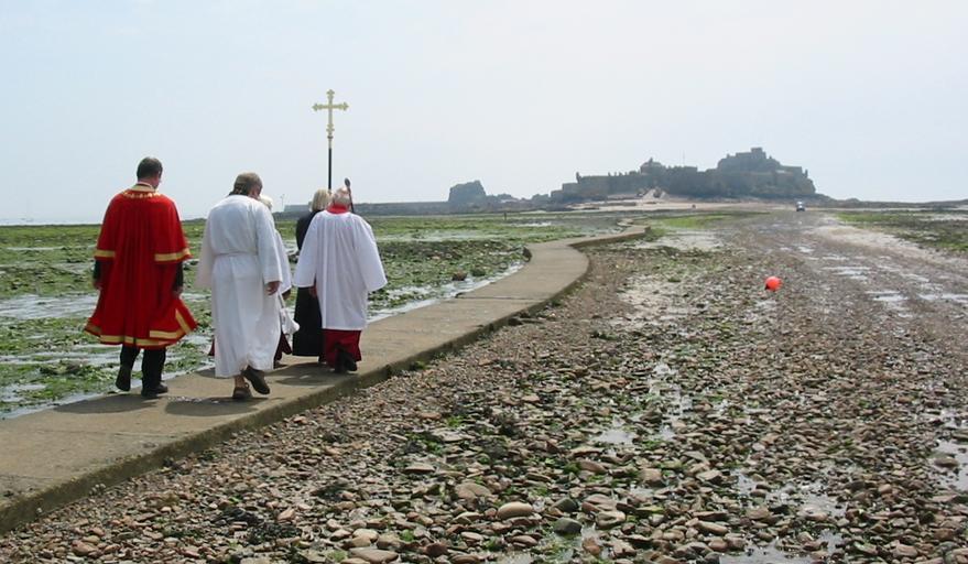 | Keywords: Saint Helier pilgrimage 2007 c.jpg Saint Helier Day pilgrimage to Elizabeth Castle Jersey 15 July 2007 Own 2007-07-15 Man vyi Saint Helier Pilgrimage Simon Crowcroft Clothing of Jersey 2007 in Saint Helier Jersey Causeway Elizabeth Castle Low tide in the Channel Islands |