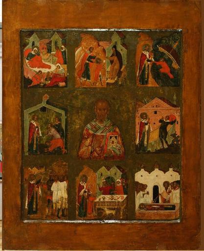 | Keywords: Saint Nicholas vita icon (Yaroslav, 17th c, Belarus).jpg  ru Пе вая т еть XVII века Де ево темпе а; 58 5 х 47 Инв  ЯХ И-585 П оисходит из це кви Димит ия Солунского в Я ославле Поступила в 1970 году Рестав и овалась в 2003 году Л Д Рыбцевой 1 Рождество  иколая Чудотво ца 2 П иведение во учение 3 Избавление Дмит ия от потопления 4 Явление  иколая Чудотво ца т ем воеводам в темнице 5 Исцеление бесноватого 6 Избавление т ех мужей от казни 7 Избавление Аг икова сына Василия из са ацинского плена 8 Пог ебение  иколая Чудотво ца 1600 1635 extracted from http //www artmuseum by/flash/VirtualVistavka_Ikoni_loder html author Institution Belarusian National Arts Museum Custom license marker 2013 09 04 PD-Art Uploaded with UploadWizard Icons of Saint Nicholas from Russia Saint Nicholas hagiography icons 17th-century icons of Russia Icons of Yaroslavl Icons in Yaroslavl Art Museum Exhibition Patron saints in the Orthodox iconography 16-19th centuries |