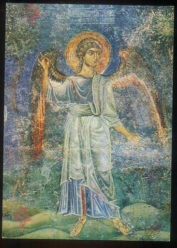 | Keywords: Saint Sofia Ohrid Fresco Postcard.jpg Ф еска в Света София Ох ид Ангел от сцената Възнесение Господне на тавана scanned postcard 11 - 13 С author PD-old Paintings in St Sophia Church Ohrid Church ceilings in the Republic of Macedonia Frescoed ceilings |