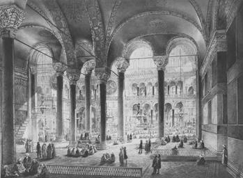 | Keywords: Saint Sophia in 1852.jpg  Цент альный вид севе ного нефа собо а Святой Софии в Константинополе scan from Х ам Святой Софии в Ца ьг аде  Пет ог ад Акционе ное общество «Биох омъ» 1914 1852 Caspard Fossati PD-Art Historical images of Hagia Sophia |