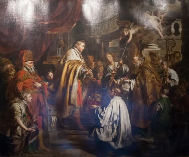 | Keywords: Saint Stephen receives the Pope's envoys.jpg  Artwork Creator Pieter Jozef Verhaghen 1770 Oil on canvas Size cm 342 284 LangSwitch Owner Tulajdonos Institution Budapest Museum of Fine Arts LangSwitch Exhibited Kiállítva Institution Hungarian National Gallery Mikó Árpád  Sinkó Katalin szerk Történelem-Kép Szemelvények múlt és művészet kapcsolatáról Magyarországon A Magyar Nemzeti Galéria kiadványai 2000/3 cat no V-43 object history credit line bottom right P J Verhaghen Aerschotonus F 1770 accession number 6782 photo by Szilas in the Hungarian National Gallery <gallery> Verhaghen Saint Stephen receives the Pope's envoys 1700 jpg </gallery> PD-old-100 Pieter Jozef Verhaghen History paintings in the Hungarian National Gallery Southern Netherlandish paintings in the Museum of Fine Arts Budapest 1770 oil on canvas paintings 1770 paintings in Hungary 18th-century history paintings Hungary in history paintings Paintings of Stephen I of Hungary Holy Crown of Hungary in art 18th-century oil on canvas paintings in Hungary |