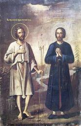Keywords: Saints Prokopius and Simeon.jpg П пп П окопий Устюжский и Симеон Ве хоту ский И бит Последняя т еть XIX в 114 8х75х2 8 http //kotlovka ru/pgalery/displayimage php album topn cat 0 pos 2899 century 19 anonimus PD-Art Simeon of Verkhoturye Procopius of Ustuzh |