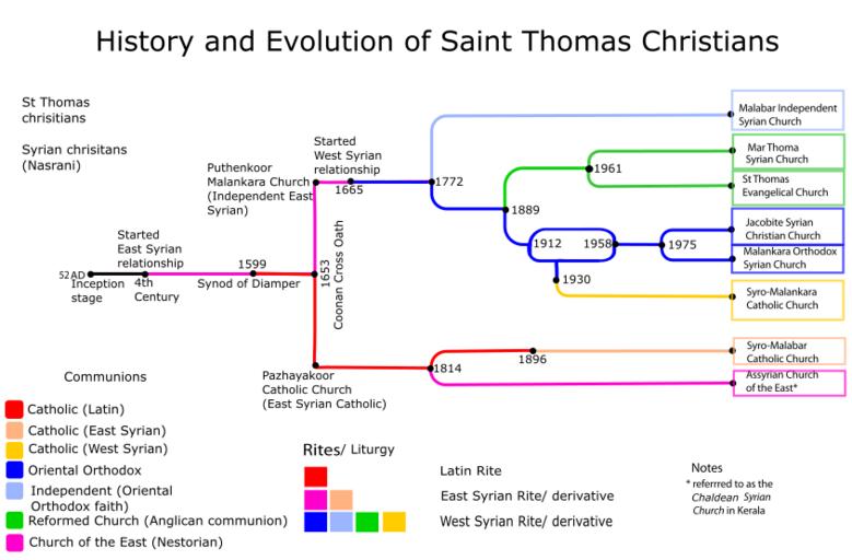 Keywords: SaintThomasChristian'sDivisionsHistoryFinal.png en A chart depicting the chronology of events that occured to the St Thomas Christians community in India and how they were divided into its present constituents 2016-10-08 own Kokkarani other versions cc-by-sa-4 0 Christianity in India Diagrams in English Timelines of Saint Thomas Christians