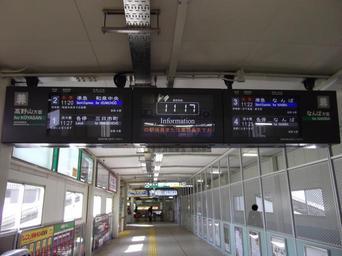 Keywords: Sakaihigashi sta display01.jpg ja 堺 駅北 口の改 上液晶ディスプレイ式発車標 投稿 が撮影 Kumetch 2011年2 23日 Cc-zero Sakaihigashi Station