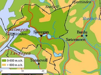 Keywords: Salangen map.jpg en Map of Salangen municipality Norway Own Jensens 2008-12-05 Maps of Troms Salangen