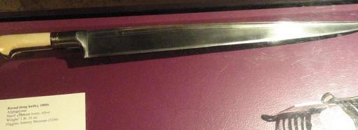 | Keywords: Salawar yataghan (khyber knife), Afghanistan, 1800s - Higgins Armory Museum - DSC05602.jpg Exhibit in the Higgins Armory Museum 100 Barber Avenue Worcester Massachusetts USA The museum permitted photography without any restriction both in writing and when I asked verbally This is a salawar yataghan khyber knife that has been mislabled by the Higgans Museum I took this photograph 2011-09-24 11 47 46 Daderot Public domain Salawar yataghan khyber knife Weapons in the Higgins Armory Museum | ||||
