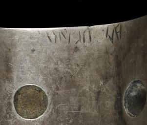 | Keywords: Salim - Bracelet - Walters 572316 - Mark A.jpg The bracelet is made of two equal halves and has three serrated halfglobules on each side The decoration combines spirals and circles; a triple bead-molded band frames the décor Inside of the bracelet is an engraved inscription in Hebrew which names the silversmith in Hebrew Sa lim xxx century 19 silver cast remains of green glass Outer diam cm 5 2 ; Inner diam 1 15/16 x W 1 7/16 in 4 9 x 3 7 cm accession number 57 2316 80920 Mr Benjamin Zucker Zucker Family Trust and Mr Derek Content New York and London by purchase Walters Art Museum Joint gift to the Walters Art Museum Baltimore and the Israel Museum Jerusalem by Mr Benjamin Zucker and Mr Derek Content in honor of Mrs Barbara Zucker and Mrs Amanda Content 2010 Engraving Hebrew Sa lim xxx place of origin northern Yemen Walters Art Museum license Jewellery in the Walters Art Museum South Arabian art in the Walters Art Museum Media contributed by the Walters Art Museum needs category review Salim silversmith |