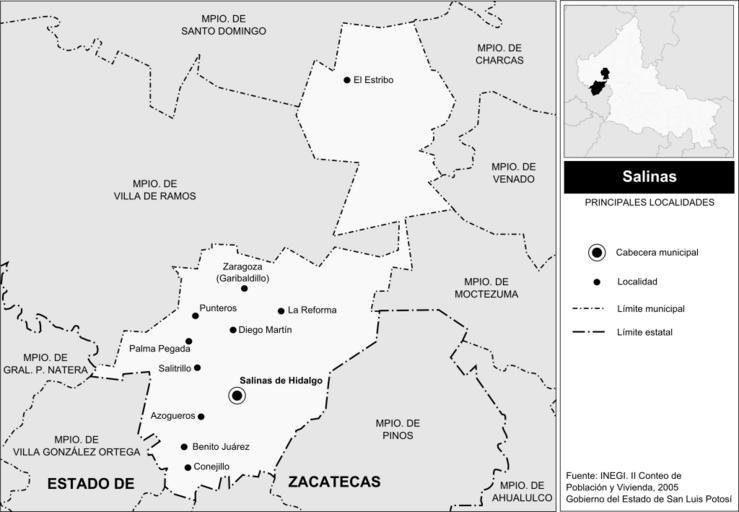 Keywords: Salinas SLP localidades.svg Mapa de las principales localidades del municipio de Salinas San Luis Potosí own 2009-03-21 Battroid Salinas San Luis Potosí