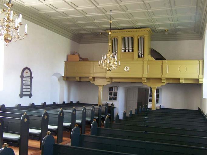Keywords: Sall-kirke-4.jpg da Sall kirke Favrskov provsti Århus stift Danmark Skibet set mod sydvest med orgelpulpitur hvorpå kirkens to orgler står Own Lars Helbo 2008-08-29 Pipe organs in Denmark Sall Kirke Naves in Denmark