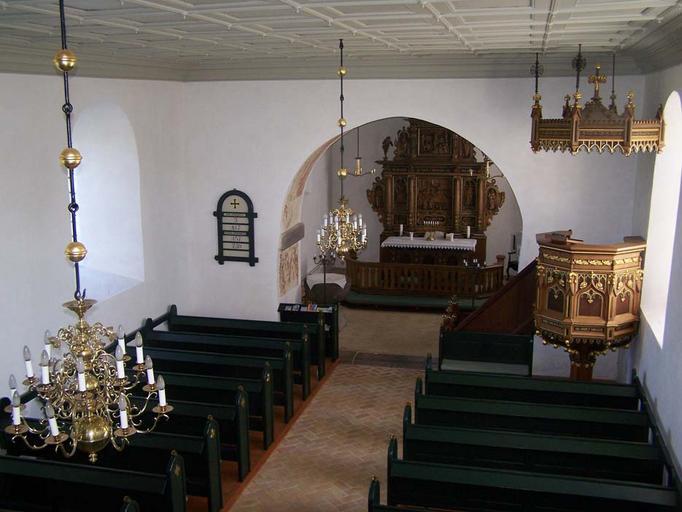 Keywords: Sall-kirke-5.jpg da Sall kirke Favrskov provsti Århus stift Danmark Skibet set mod nordøst fra pulpituret Own Lars Helbo 2008-08-29 Sall Kirke Naves in Denmark