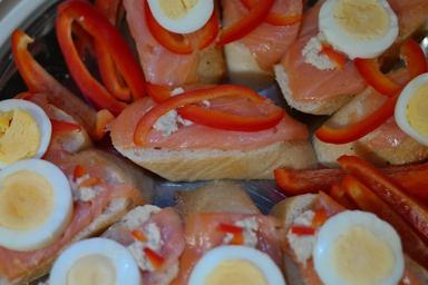 Keywords: salmon bun delicious snack cold buffet buffet dinner breads egg paprika hearty salmon roll