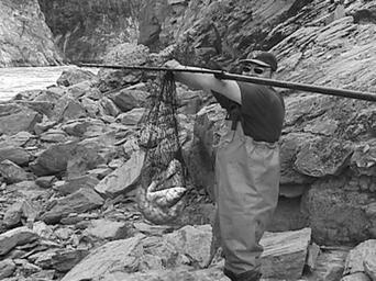 | Keywords: Salmon dipnetting FWS.jpg en Subsistence Salmon Dipnetting Aleut subsistence fisherman Paulo Wolcoff with a king chinook and sockeye red salmon Both fish were netted at the same time He is shown here fishing at the King Hole in the canyon of the Copper river about 7 miles downriver from Chitna Alaska Hi FWS keywords Subsistence; Recreation; Sockeye Salmon; Red Salmon; Salmon; Chitna; Woods Canyon; Copper River Publisher U S Fish and Wildlife Service Contributors Region 7 External Affairs Source DI-young c-016 Rights Public domain US Fish and Wildlife Service National Digital Library http //www fws gov/digitalmedia/cdm4/item_viewer php CISOROOT /natdiglib CISOPTR 4353 CISOBOX 1 REC 1 Chuck Young 2002-07-16 Consent published PD-USGov Salmon fishing Hand nets Aleut people 2002 in Alaska Subsistence in Alaska Waders footwear Copper River |