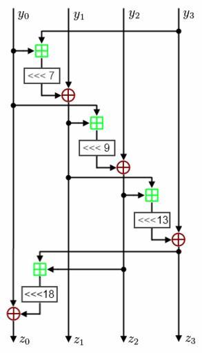 Keywords: Salsa20 quarterround.png en Diagram of quarterround function in Salsa20 ru Схема функции quarterround Ð°Ð»Ð³Ð¾Ñ Ð¸Ñ‚Ð¼Ð° Salsa20 own Bn7 2010-11-17 Symmetric cipher diagrams