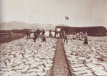 Keywords: Saltfiskur.jpg Drying of salt cod in Kirkjusandur Iceland Scanned from Þór Magnússon 1976 Ljósmyndir Sigfúsar Eymundssonar Almenna bókafélagið Reykjavík page 73 < 1898 Sigfús Eymundsson 1837 - 1911 pd-old Food of Iceland Dried and salted cod Iceland in the 1890s Fish processing in Iceland |
