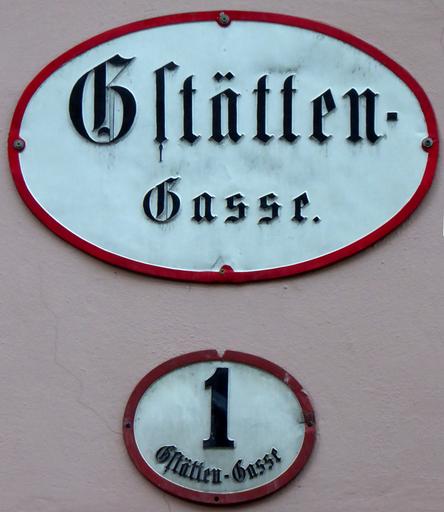 Keywords: Salzburg, Straßenschild Gstättengasse, 1.jpeg de Salzburg Straßen- und Hausnummernschild Gstättengasse eo Salzburg AT stratnoma kaj domnumera tabuloj en la strato Gstättengasse self-photographed Aisano 2016-01-14 Cc-zero 47 48 1 6 N 13 2 22 0 E heading SW Fraktur street name signs in Salzburg Getreidegasse Street signs and house numbers in the Historic centre of the city of Salzburg Getreidegasse Gstättengasse Salzburg 1 house number Salzburg House numbers in Salzburg state Gstatten |