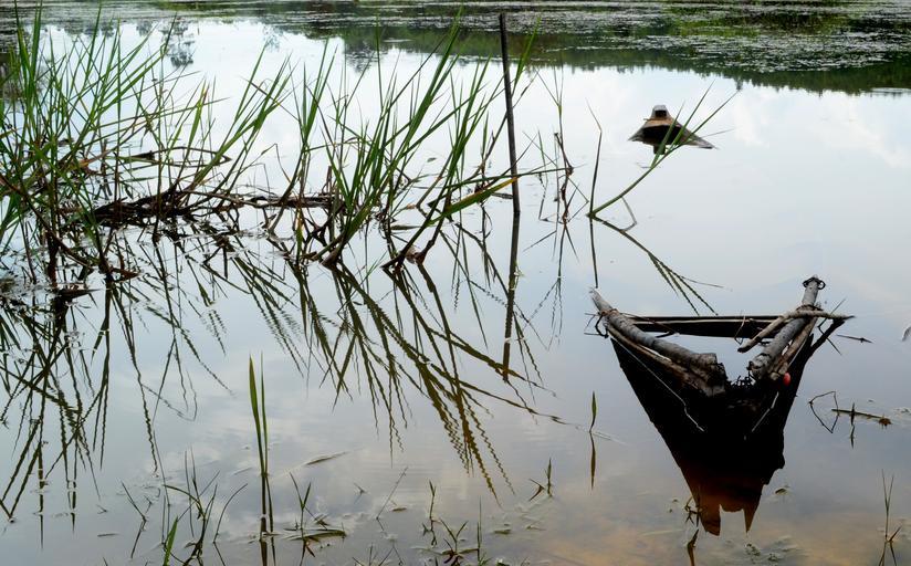 Keywords: sampan sampan sinking sinking sink water lake plant nature