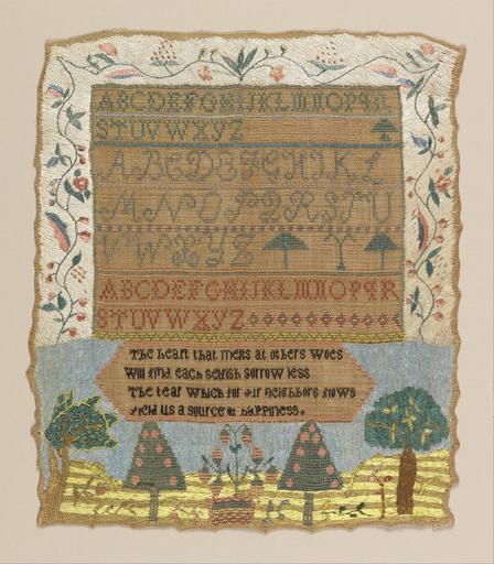 | Keywords: Sampler - Google Art Project (5492586).jpg ~ 1775 6938587 Unknown /collection/cooper-hewitt-national-design-museum/artwork/sampler-unknown/5492586/ 75211 author /collection/cooper-hewitt-national-design-museum/ Cooper-Hewitt National Design Museum 3644669 http //www cooperhewitt org/ /collection/cooper-hewitt-national-design-museum/artwork/sampler-unknown/5492586/ 1770 ca 1775 Medium silk embroidery on linen foundationTechnique embroidered in counted satin stem cross eyelet and overcasting stitches on plain weave foundation By 1941 Mrs Henry E Coe Eva Johnston Coe 1941 Museum for the Arts of Decoration of the Cooper Union 395 5492586 False 1780 1941-69-148 http //collection cooperhewitt org/view/objects/asitem/id/75211 Bequest of Mrs Henry E Coe Sampler 1770 1790 w340 x h395 cm ca 1775 False 0 875 Object sampler-unknown Sampler s 340 H x W 39 5 x 34 cm 15 9/16 x 13 3/8 in New York New York Cooper-Hewitt Museum Embroidered Samplers in the Collection of the Cooper-Hewitt Museum 1984 Medium silk embroidery on linen foundationTechnique embroidered in counted satin stem cross eyelet and overcasting stitches on plain weave foundation By 1941 Mrs Henry E Coe Eva Johnston Coe 1941 Museum for the Arts of Decoration of the Cooper Union special url_id 9wFdXPhbq5asuw PD-old-100-1923 Google Art Project works by unknown artist Textiles in the Cooper “Hewitt Smithsonian Design Museum 1770s samplers Google Art Project works in Cooper-Hewitt Smithsonian Design Museum 1775 works |