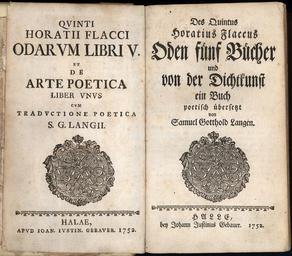 Keywords: Samuel Gotthold Lange, Horaz (1752), ii-iii.jpg 4-5 ii-iii vi-vii PD-old-100-1923 Illustrated title pages from Germany Frontispieces from Germany