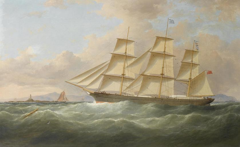 | Keywords: Samuel Walters - The ship 'Chevy Chase' inward bound off the Skerries (1864).jpg  Artwork Creator Samuel Walters 1864 oil canvas cm 50 8 81 3 object history credit line ~ lower left signature and date 'Chevy Chase ™ was an iron full-rigger built for Blythe Bros of Liverpool in October 1863 Launched from Vernon ™s yard also in Liverpool she was a handsome 3-master registered at 678 tons gross net and measuring 177 feet in length with a 28 foot beam Although she began her career trading to India in 1866 she transferred into the South American trade where she remained until 1872 Sold that year to G H Fletcher Co of Liverpool her new owner ran her out of the Clyde to San Francisco a route she maintained until 1876 when she was cut down to a barque to save on crewing costs She continued trading thereafter until disappearing from record in the mid-1880s accession number http //www bonhams com/auctions/14977/lot/63/ Bonhams London 11 Sep 2007 lot 63 PD-old-100-1923 Samuel Walters Sailing ships in paintings Images from Bonhams |